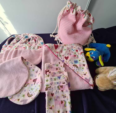 Une jolie manière d'accueillir bébé avec ce joli pack starter de naissance comprenant :