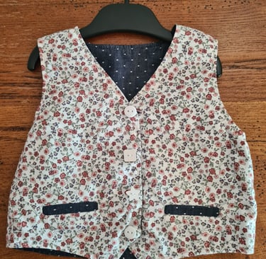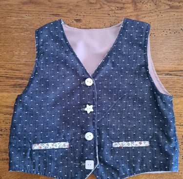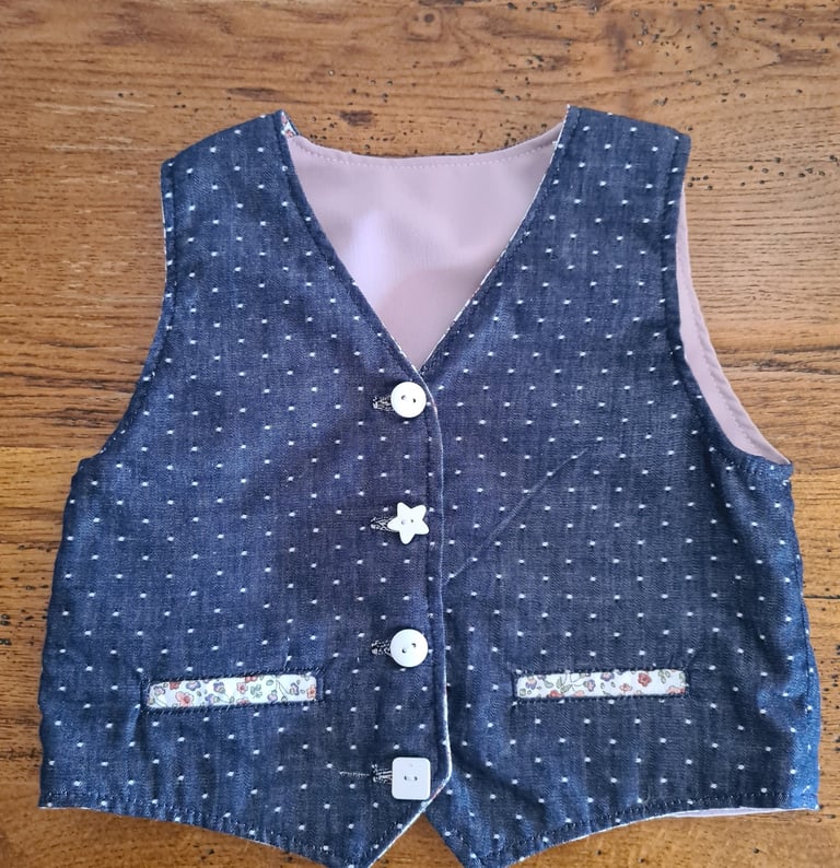 Ce gilet enfant a été réalisé en coton okeo tex, il est réversible